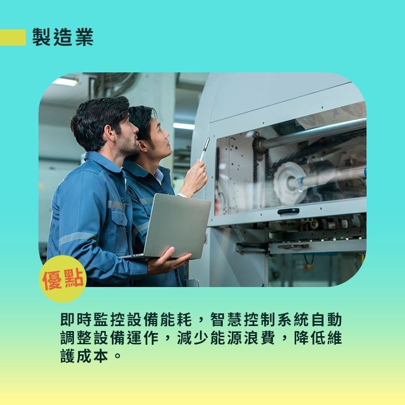 🔧 製造業:EMS可以即時監控設備能耗,發現高能耗區域,並透過智慧控制系統自動調整設備運作,減少能源浪費,延長設備壽命,降低維護成本,提升生產效率。