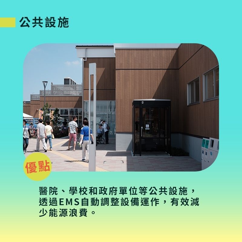 🏥 公共設施:醫院、學校和政府單位等公共設施,透過EMS自動調整設備運作,有效減少能源浪費,降低開支,協助實現環保目標。